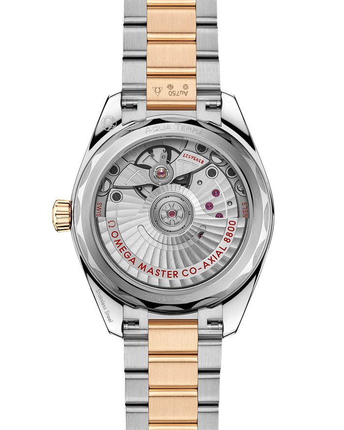 De Seamaster Aqua Terra is een prachtig eerbetoon aan OMEGA’s lange en rijke geschiedenis op het gebied van diepzeeverkenning. Dit 34 mm model heeft een symmetrische kast van roestvrijstaal en 18K Moonshine™ Gold met een geschroefd kastdeksel met golvende randen.