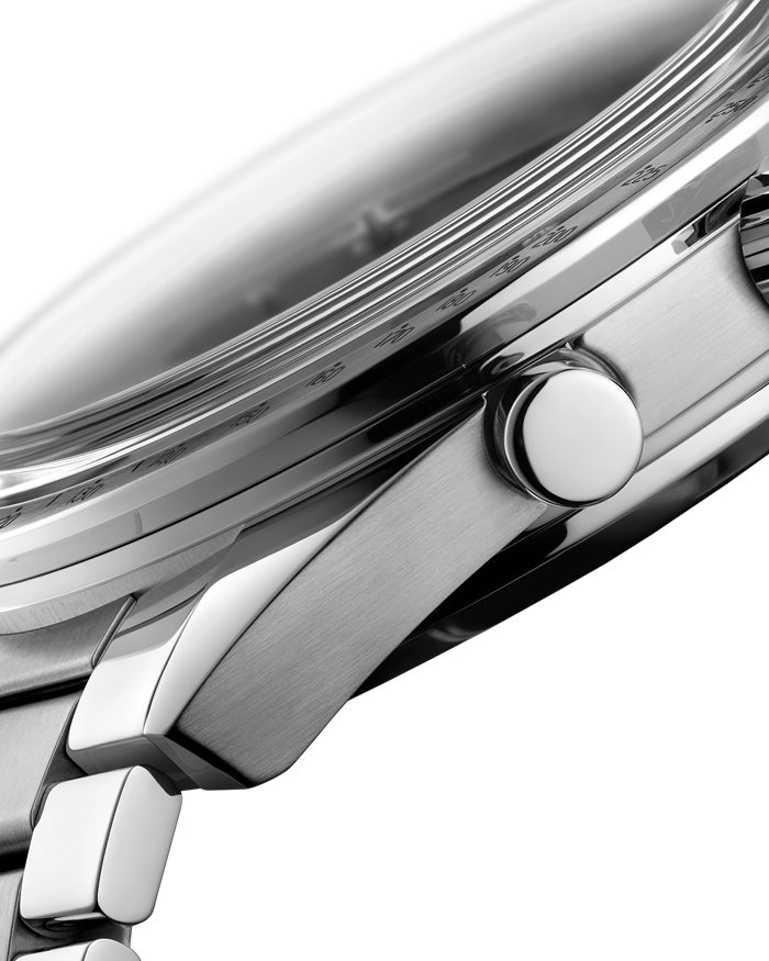 Dit 40,50 mm model, geïnspireerd op het legendarische origineel uit 1957, heeft een roestvrijstalen kast en een zwarte wijzerplaat met verzonken uurmarkeringen met onderaan een vintage Super-LumiNova coating. Dit model heeft gerhodineerde ‘Broad Arrow’ wijzers, een datumvenster op 6 uur, een hulpwijzerplaat met kleine secondewijzer op 9 uur en chronograaf 60-minuten- en 12-urentellers op de hulpwijzerplaat op 3 uur.