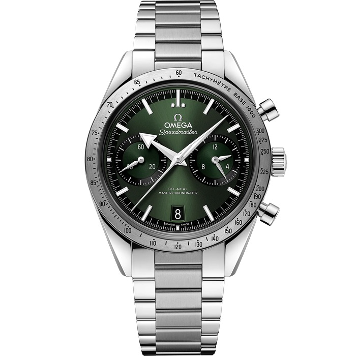 Dit 40,50 mm model, geïnspireerd op het legendarische origineel uit 1957, heeft een roestvrijstalen kast en een groene wijzerplaat met gerhodineerde uurmarkeringen en ‘Broad Arrow’ wijzers – een voor een afgewerkt met een witte Super-LumiNova coating. Dit model heeft een datumvenster op 6 uur, een hulpwijzerplaat met kleine secondewijzer op 9 uur die is voorzien van een chronograaf 60-minuten- en 12-urenteller op 3 uur.
